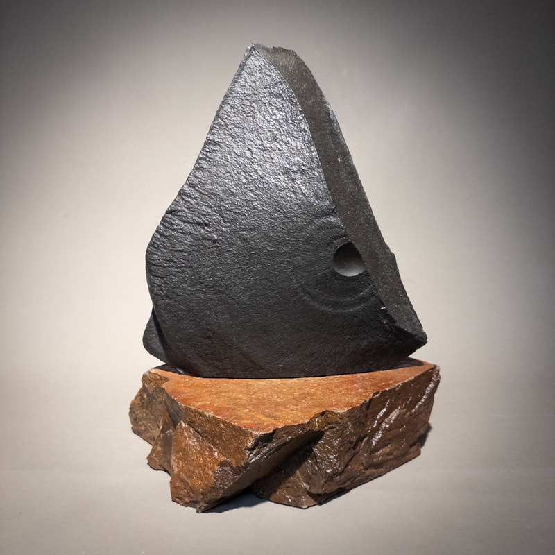 Huge flows of black basalt covered much of Eastern Oregon and Washington sixteen million years ago. Many of these flows have prismatic cooling joints, causing them to naturally break into shards with sharp edges, smooth planes and elegant curves. The faces of joints are slowly painted with iron oxide and clay as groundwater flows quietly through the rock for hundreds of thousands of years. I like to contrast these ancient natural surfaces with highly polished or honed faces that reveal the heart of the rock.